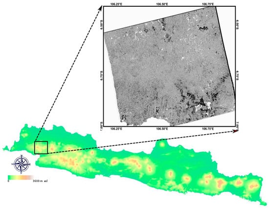 Taman Nasional Gunung Halimun Salak (TNGHS) is the last remaining rain forest in Java island [81], situated approximately 65 km south of Jakarta, the capital city of Indonesia (Figure 1). The park is the last montane rain forest on Java Island, hosting several endangered species such as the Javan leopard (Panthera pardus melas), the Javan eagle (Spizaetus bartelsi) and the Javan gibbon (Hylobates moloch). This park is located in rugged terrain and has not experienced a major disturbance in the past decades, hence the claim should be assessed. Previous research reported that the dynamic of land cover at the surrounding of protected areas like parks may compromise the ecological function of the areas, including the conservation of protected species as well as downstream water provision [82]. Land cover dynamics of this critically important area and its surroundings threaten numerous ecosystem services. Monitoring of this site and its surroundings is needed to provide information on how resilient the park’s natural values are.