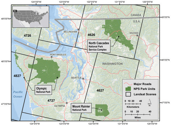 - Antonova, N.; Copass, C.; Clary, S. Landsat-Based Monitoring of Landscape Dynamics in the North Cascades National Park Service Complex: 1985–2009; Natural Resource Data Series; NPS/NCCN/NRDS—2013/532; National Park Service: Fort Collins, CO, USA, 2013.