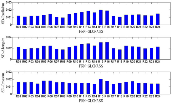 Figure 9. The SD of the orbit discontinuities at day boundaries for GLONASS.