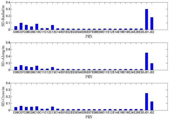 Figure 10. The SD of the orbit discontinuities at day boundaries for BDS, Galileo, and QZSS.