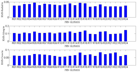 Figure 13. The RMS between the six-hour predicted orbits of IGGAC and the orbits of GFZ for GLONASS.