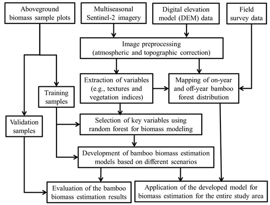 Framework of mapping bamboo forest aboveground biomass distribution using Sentinel-2 data.