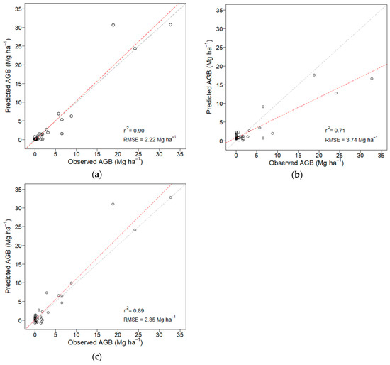 Akaike information criterion (AIC) was used to compare the performance of the different models. AIC has been recently used for comparing models in other studies that have estimated AGB based on remotely-sensed data [38,94].