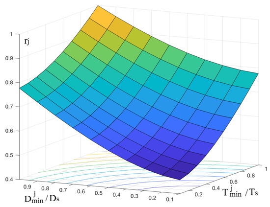 Assuming higher values of particular weight coefficients ε1, ε2 and ε3; the share of the risk of collision rj depending on the distance of ships Dj and Djmin or the time of excessive approach of ships Tjmin increases.