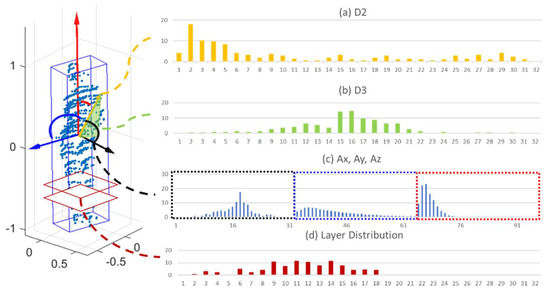 Figure 6. Oriented Ensemble of Shape Functions (OESF): (a) D2; (b) D3; (c) Ax, Ay, and Az; (d) layer distribution function.
