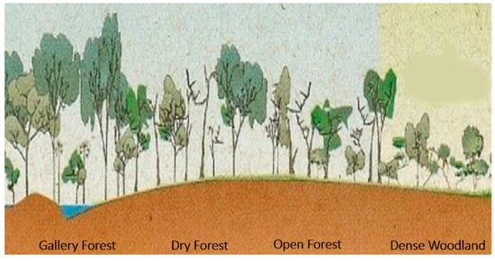 In general, the vegetation of Cerrado in Brazil covers three main different vegetation types: grassland, savannas, and forest formations. The forest formations consist of arboreal species in a continuous canopy and include the Gallery, Dry, and Open Forest. The savanna formation is characterized by a discontinuous herbaceous-shrub and tree canopy. The seven types of savanna formation are Dense Woodland, Woodland, Open Woodland, Park Woodland, Palm, Vereda, and Stone Woodland. The grassland formations include three vegetation types: Stone Grassland, Shrub Savanna, and Grassland. The first two types of grasslands are characterized by the large presence of shrubs with different types of soils. Figure 2 summarizes the distribution of the three different vegetation formations in the Cerrado biome. Each of these types has a high diversity, which is a consequence of the high variability of the soil and microclimates as well as the floristic evolution with plants from different Brazilian biomes [].