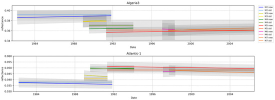 Convoluted clear-sky SCIAMACHY spectra above Algeria-3 using Meteosat-2 and Meteosat-5 SRFs that were valid at each satellites’ launch date.