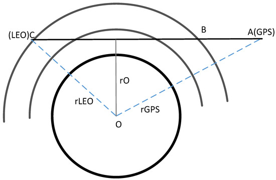 where denotes the calibrated STEC; is the occultation STEC; and is the nonoccultation STEC corresponding to the AC segment. These variables can be obtained through the ground-based GNSS process with the phase observations of multifrequency data. In the occultation process, the time it takes for a LEO satellite to move from point C to point B is very short, and, thus, the distance of GNSS satellite motion is very short. We can assume that the ionospheric change along AB section is not significant, and the STEC of segment BC without DCB errors can be obtained; this segment is the influence of the ionosphere below the orbital height of the LEO satellite on signal propagation [31].