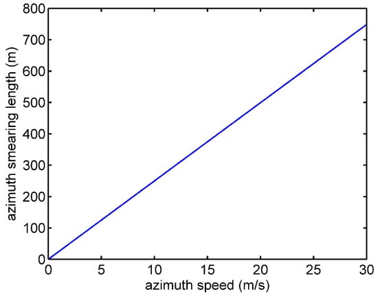The target’s azimuth smearing length in 12.5 s (Gaofen-3 illuminating time in staring spotlight mode) versus azimuth speed.