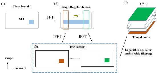 Each image corresponds to a look angle , the images are denoted as . Apply the logarithm operator (each is expressed with dB unit) and speckle filtering, the OSLI sequence is obtained by indexing the images with look angle . The expression of OSLI is denoted as