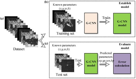 Moreover, the dataset must have been correctly labeled. Additionally, the dataset was divided into: (1) a training set which was used to establish a detection model; (2) a test set which was used to evaluate the detection model. According to the parameters of the known real ships in the training set, G-CNN fits these parameters by iteration many times to minimize the error. Finally, the ship detection model was obtained by training. Afterwards, the test set was used to evaluate the performance of the detection model. In other words, by calculating the error between the predicted parameters (xp,yp,wp,hp) and the known parameters (x,y,w,h).