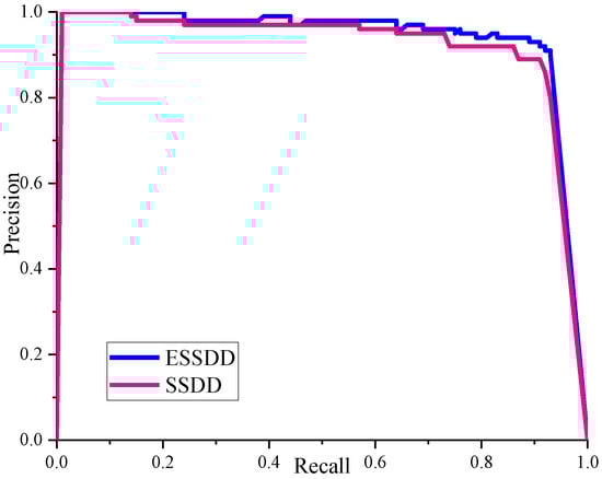 where P is precision, R is recall, P(R) is a function with R as an independent variable and P as a dependent variable. Mean average precision (mAP) measures the performance of object detection for several classes such as bird, cat, dog, and so on in the PASCAL VOC dataset []. If there is only one class to detect, such as ship in the SSDD, mAP can be simplified to AP (average precision) []. In the following description, we will use AP to measure the performance of our detector.