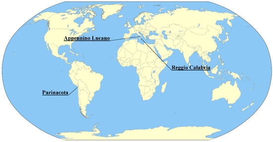 Although, as will be shown in the next chapters, the correction procedure is clearly effective to the correction of both topographic and adjacency effects, due to the presence of vegetation covers, the impact of solar exposure makes the site not fully reliable for the generalization of the statistical analysis related to the standardization of terrain slopes. Thus, the second test case was placed in a very arid location in the Parinacota region of Chile, within the Andean mountains (Figure 3).