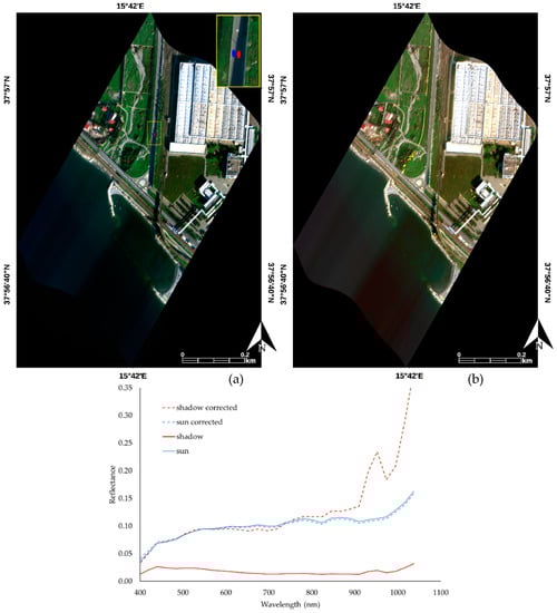 It must be said that these results are achievable only for airborne acquisitions. In the case of satellite observations, in fact, shadow corrections are much less efficient due to the absorption along the atmospheric column, which almost leads to a complete reset of the signal.