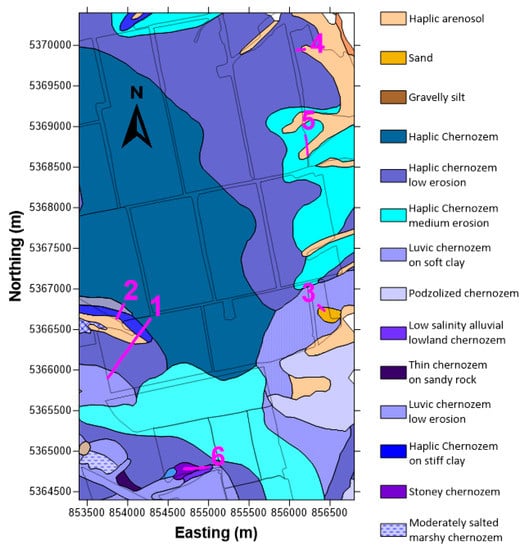 - Krupsky, N.K.; Polupan, N.I. Atlas of soils of the Ukrainian SSR, Kiev: “Harvest”; Urozhai: Kyiv, Ukrainian SSR, 1979; 160p. (In Russian) [Google Scholar]