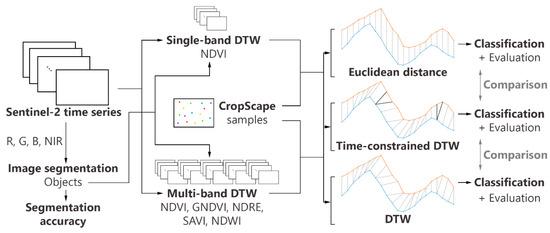 - Belgiu, M.; Csillik, O. Sentinel-2 Cropland Mapping using Pixel-based and Object-based Time-Weighted Dynamic Time Warping Analysis. Remote Sens. Environ. 2018, 204, 509–523. [Google Scholar] [CrossRef]