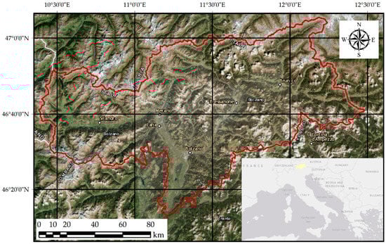 The study area is located in the central-eastern Alps in the northern part of Italy, the Autonomous Province of Bolzano/Bozen, and it covers area of 7400 km2 (Figure 1).