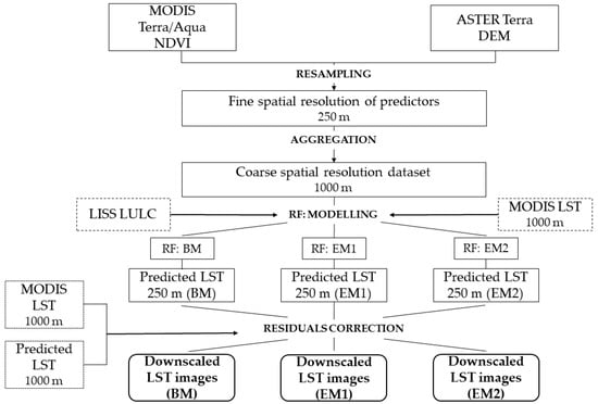 Overview of the procedure for downscaling land surface temperature from MODIS data.