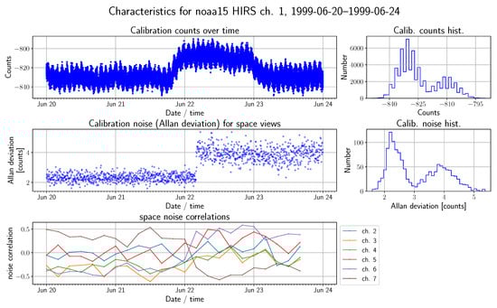To take a closer look at such temporal evolution, Figure 6 shows the noise and error correlation behaviour for NOAA-15 HIRS channel 1 for four days in June 1999, as determined by the 2-sample Allan deviation [],