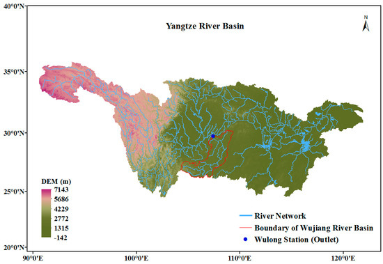Geographical location of the Yangtze River basin. The upstream sub-basin, the Wujiang catchment, was used to model the hydrological effect of bias-corrected satellite precipitation estimates.
