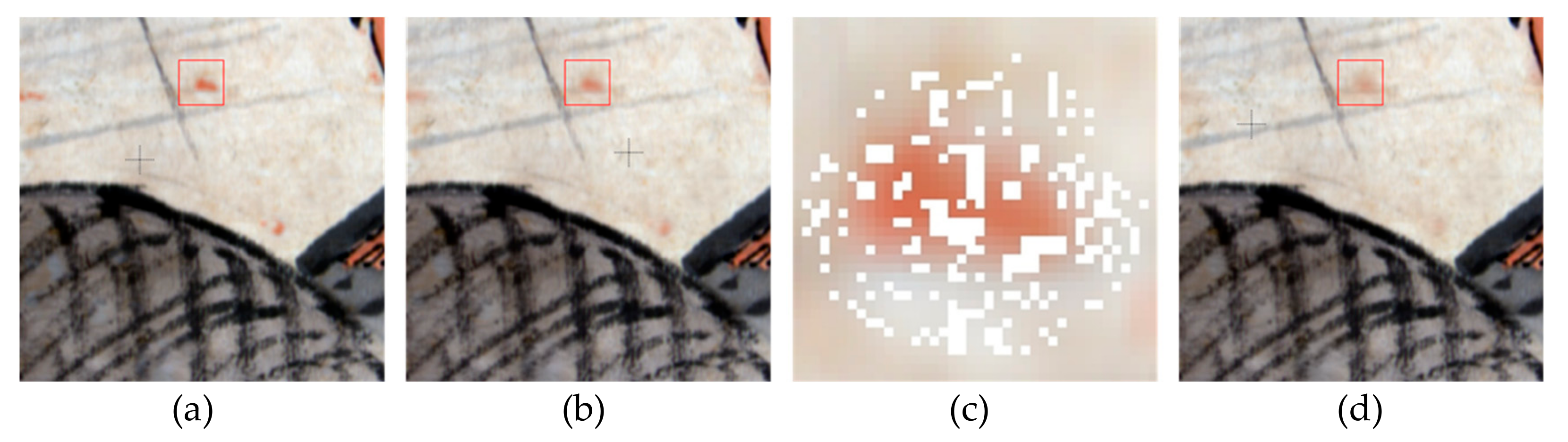 APA StyleZhou, P., Hou, M., Lv, S., Zhao, X., & Wu, W. (2019). Virtual Restoration of Stained Chinese Paintings Using Patch-Based Color Constrained Poisson Editing with Selected Hyperspectral Feature Bands. Remote Sensing, 11(11), 1384. https://doi.org/10.3390/rs11111384