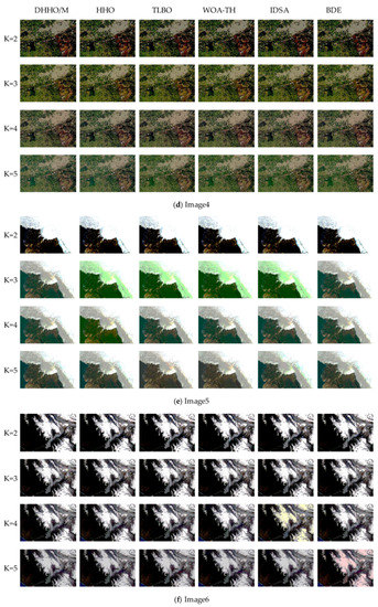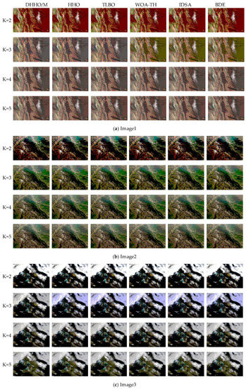 | Image | K | DHHO/M | HHO | TLBO | WOA-TH | IDSA | BDE |
