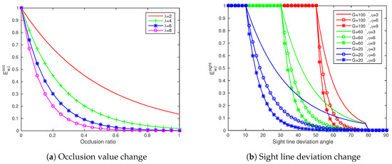 We label a viewpoint at position as . w is the width from viewpoint to roadside in vertical road direction. l is the length from viewpoint to traffic sign along road direction. The visibility of a traffic sign from a viewpoint , except for the occlusion factor, we express all the other factors included in the geometric factors (mentioned in Section 1), as . Geometric factor , occlusion factor and sight line deviation factor are used to construct the VEM model. The viewpoint visibility of a traffic sign, , is defined as follows:
