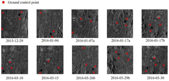 According to the geometric calibration model, the main factors affecting the geometric calibration accuracy are orbit accuracy, atmospheric path delay correction accuracy, and GCP coordinate (pixel coordinates and ground coordinates) measurement errors. For a low orbit SAR satellite, precise orbit determination can give an orbit accuracy of the order of decimeters and can sometimes achieve centimeters [17,18,19]. The positioning error caused by errors arising from the atmospheric delay correction model used here is also of the order of the decimeters [1,2].