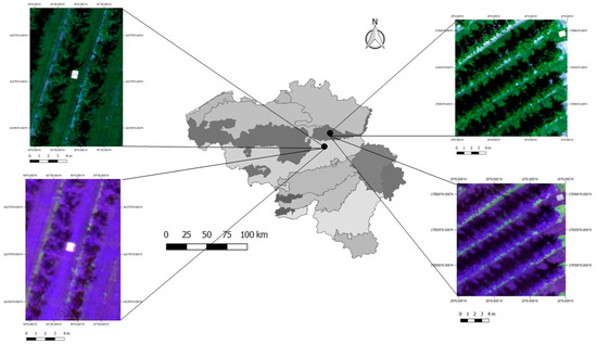 Univariate models such as vegetation indices (VI’s) rely on carefully selected band ratios which are then related to the parameter of interest. VI’s are defined to enhance spectral features sensitive to a vegetation property while reducing noise by combining some spectral bands into a VI. These VI’s are simple to compute but do not exploit the wealth of spectral information in other bands. In contrast to univariate models, multivariate models are better in separating the confounding factors from the parameter we want to extract [26]. The higher accuracy of multivariate compared to univariate models for CCC retrieval was already proven for unitemporal crop and tree species data by Verrelst et al. (2012a) [13] and Degerickx et al. (2018) [14]. An extensive overview of the use of multivariate models for estimating biochemical parameters of agricultural crops using RPAS imagery was given by the reviews of Pádua et al. (2017) and Adão et al. (2017) [32,33].
