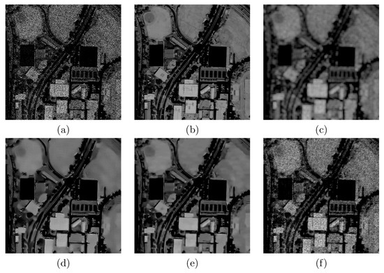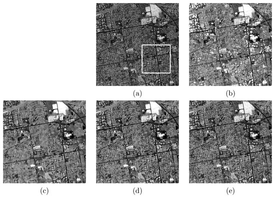 Hence, the comparison with the other filtering techniques related to the Rome test case is highlighted in Figure 7, Figure 8 and Figure 9. Figure 7 shows the test, reference, and filtered output images.