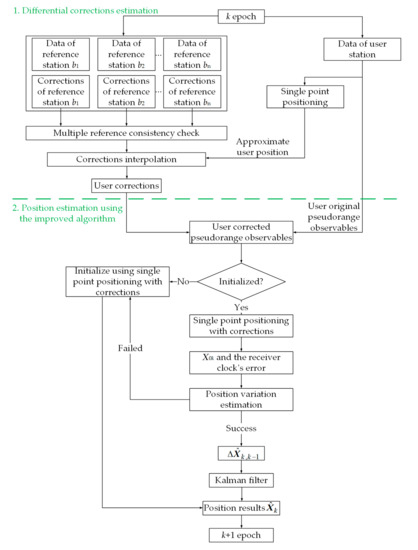 Figure 1 gives the specific procedures of the network real-time differential positioning using the improved algorithm in the position domain. It contains two steps: