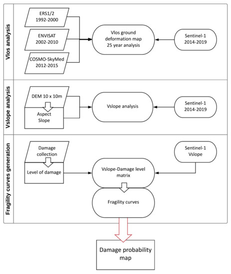 Block diagram of the methodology. Vlos, velocity along the satellite Line of Sight; Vslope, velocity projected along the maximum slope.