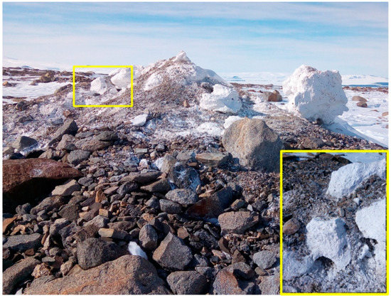 - French, H.M.; Guglielmin, M. Observations on the ice-marginal, periglacial geomorphology of Terra Nova Bay, Northern Victoria Land, Antarctica. Permafr. Periglac. Process. 1999, 10, 331–347. [Google Scholar] [CrossRef]