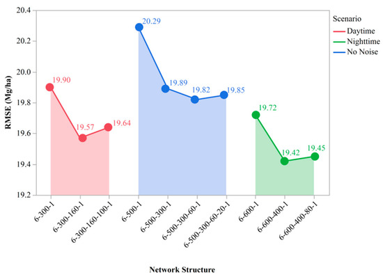 Neural network structures for predicting AGB with the daytime, nighttime, and no noise scenarios.
