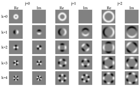 where , M is the largest order used to describe the image gradient. According to the gradient images, a set of complex-valued coefficient images is produced. An example of this expansion is shown in Figure 7.