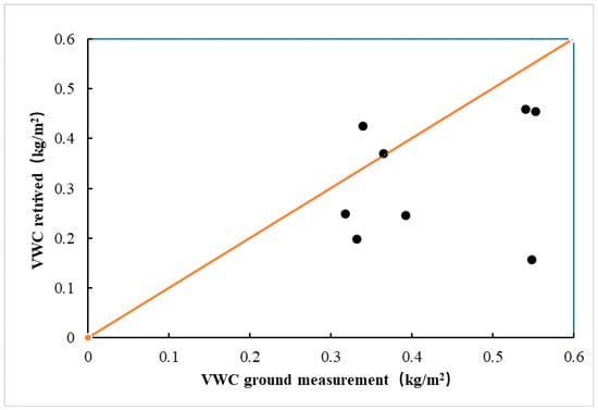 Comparison between the remote-sensing derived VWC and the measured VWC.