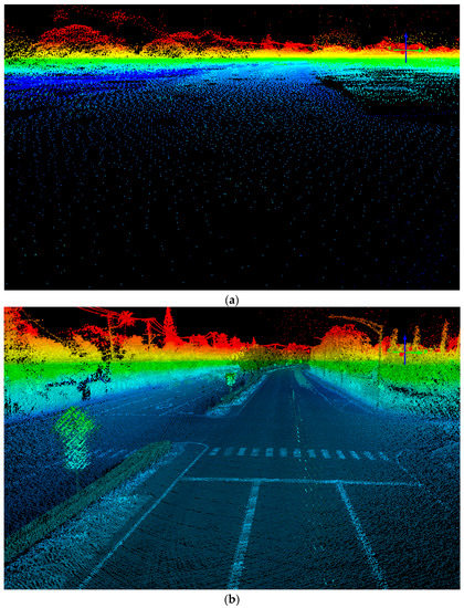 (1) Registration of MLS with other point clouds. The point clouds from different sources can be aligned in a common, global coordinate system by a pairwise registration and individual transformations, using the overlap of point clouds to establish a link [121,122,123]. Some studies have introduced artificial targets (such as spheres) in the registration of multi-view point clouds [124,125], in which the centroids of the detected targets were used for rough registration, and the position, orientation, and geometric shapes were used for refining the results. Cheng et al. (2015, 2018) proposed a hierarchical, coarse-to-fine registration strategy for registering laser scanning point clouds [122,123]. The road networks and 3D building contours were used for the initial coarse and fine registration, respectively. Often, local feature descriptors and geometric key point descriptors have been designed for efficient 3D point cloud registration, involving a comprehensive description of local shape geometries about local depth, point density, and angles between normal [114,126]. An automatic non-rigid registration method for multi-strip MLS point clouds was also proposed by Yan et al. (2018) [125]. This method was verified with MLS data scanned in city road and highway environment, and the root mean square errors were about 4–5 cm.