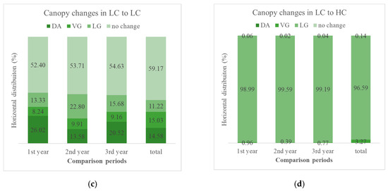 Although we found that one-year interval change detections showed the potential to achieve detailed information about canopy changes, further study is warranted. For example, since detecting changes in the distribution of canopies might be easily affected by the grid size and the DOY of data acquisition, an adequate grid size and DOY should be suggested. In particular, in the case of DOY, seasonal variations in the canopies over a year could be studied with a mobile LiDAR, and this may both hint at the DOY of data acquisition via airborne LiDAR survey and inform about seasonal changes in canopy structures.