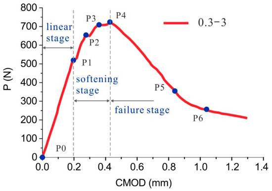 Three stages for typical P-CMOD curve of specimen 0.3-3.