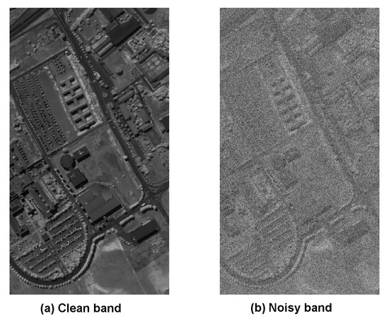Pavia University bands. (a) clean band; (b) noisy band (This figure is better seen by zooming in on a computer screen).