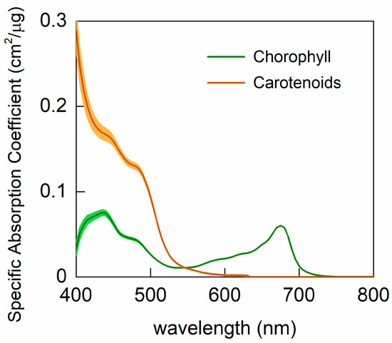 - Clark, J.B.; Lister, G.R. Photosynthetic Action Spectra of Trees. Plant Physiol. 1975, 55, 407–413. [Google Scholar] [CrossRef] [PubMed]