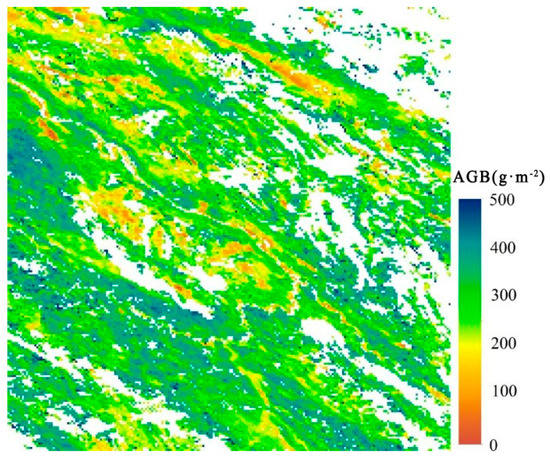 Aboveground biomass (AGB) map (DOY 225, 2017) generated from the proposed method.
