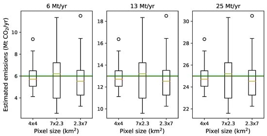 - Broquet, G.; Bréon, F.M.; Renault, E.; Buchwitz, M.; Reuter, M.; Bovensmann, H.; Chevallier, F.; Wu, L.; Ciais, P. The potential of satellite spectro-imagery for monitoring CO2 emissions from large cities. Atmos. Meas. Tech. 2018, 11, 681–708. [Google Scholar] [CrossRef]