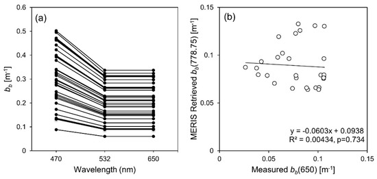 where L is the effective pathlength (0.015 m) and apg(λ) is the absorption due to particulate and dissolved matter. apg(λ) was simultaneously measured in situ by a AC-9 (WET Labs, Inc.), and these data were processed using the temperature scattering correction from Röttgers et al. [63] and pure water calibrations measured before and after the campaign. In each case, the nearest wavelengths to the ECO-BB3 wavelengths were applied (i.e., 488, 532 and 660). βt(λ,124°) is then calculated as: