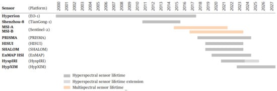 Lifetime of the main multispectral imagers sensors and the hyperspectral-image (HSI) sensor in past and plan [3].