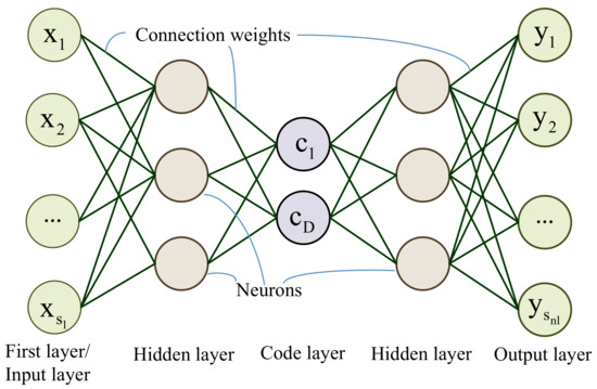 In HSI AD application, the number of neurons in the first layer and the output layer are equal to the spectral band number of the HSI. The output of neurons in the -th layer is represented as or as follows [38]: