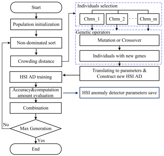 Both objects are related to the factors including neurons number, local window size, leaky value of the network in Formula (1), and the bit-widths of the arithmetic units. Actually, the above problem is a constrained multi-objective optimization problem. The solution to this problem can be regarded as a multi-objective programming (MOP) problem which is an NP-hard problem. To define the problem, a series of constraining conditions and the objects functions are proposed in the following Section 3.2 and Section 3.3. By solving the MOP with NSGA-II in Section 3.4, the structure pruning, and the data quantization can be implemented for the network of the HSI AD.