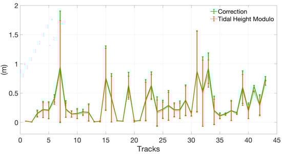 Tidal height modulos and the corresponding tidal positioning corrections of the tracks.