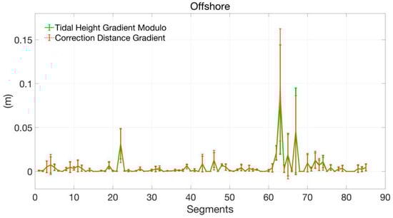 Tidal height gradient modulos and the corresponding tidal positioning correction gradient modulos of the offshore segments.