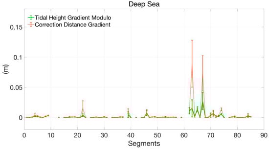 Tidal height gradient modulos and the corresponding tidal positioning correction gradient modulos of the deep sea segments.